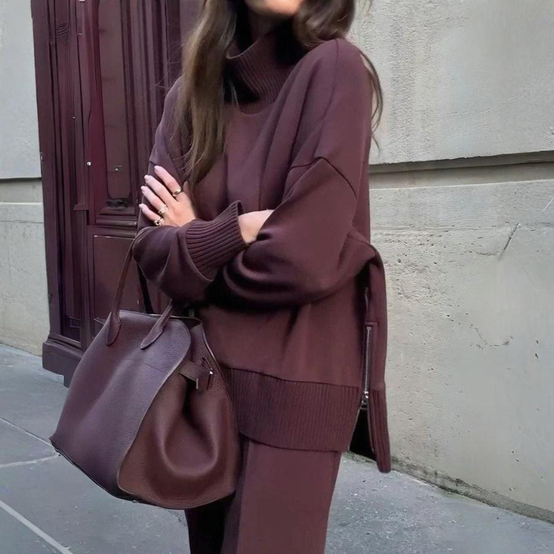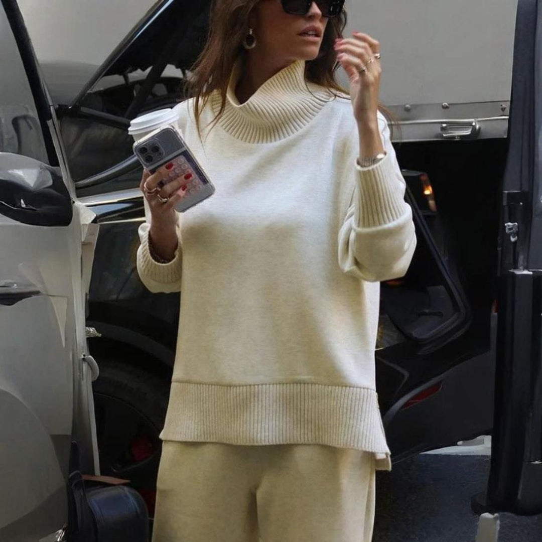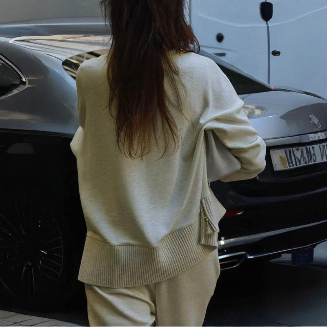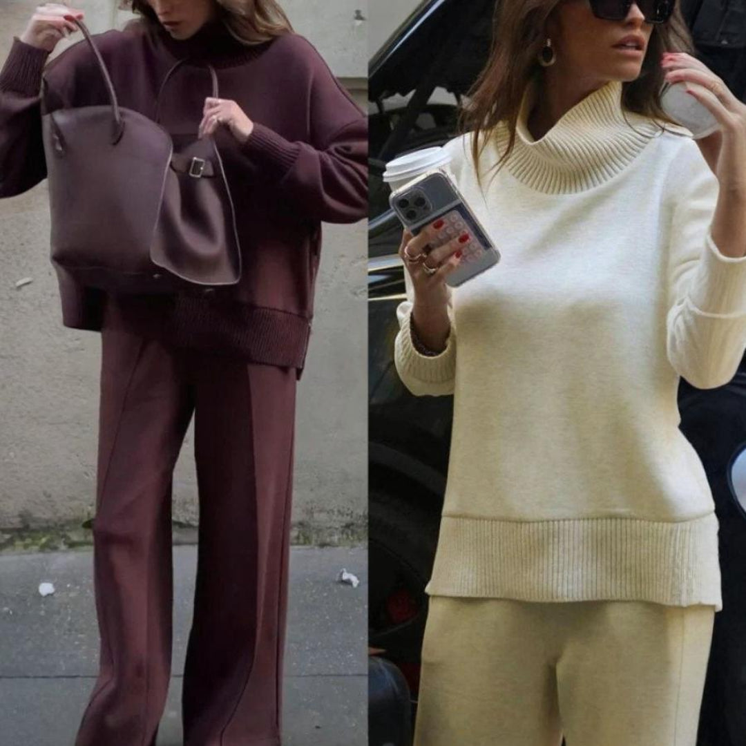 Scopri il Set Doppio Morbido Alessandra di Monarca Milano, un completo che combina comfort e raffinatezza in un design moderno e versatile. La maglia a collo alto con zip laterale aggiunge un tocco di eleganza funzionale, mentre i pantaloni larghi con vita elasticizzata garantiscono libertà di movimento e comodità assoluta. Perfetto per look casual-chic, momenti di relax o outfit più ricercati.